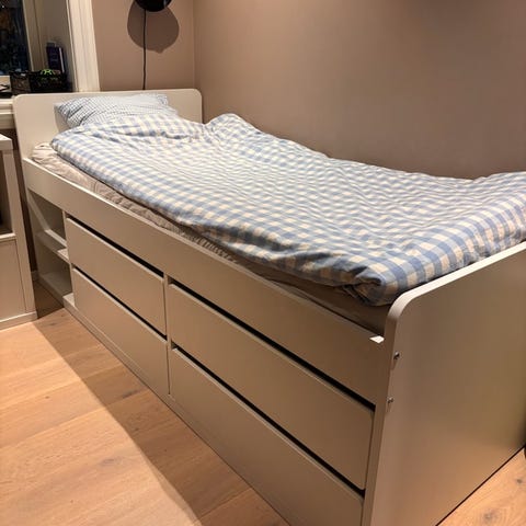 Seng med masse oppbevaring
