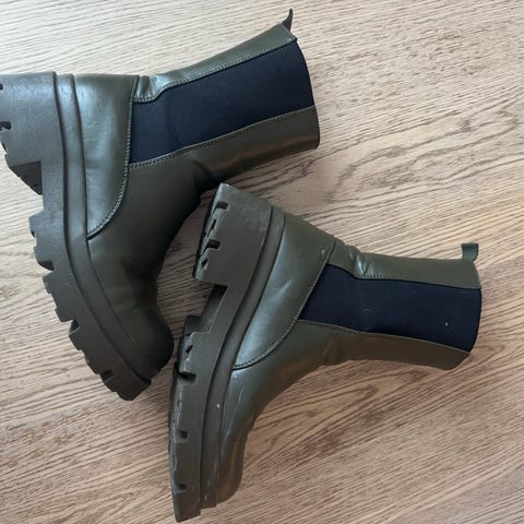 Stockholm Design Group støvler i størrelse 41. Støvlene er gronne og har elastiske sidepaneler for enkel på- og avkledning. Sålen har et godt mønster for grep. Passer til daglig bruk og ulike værforhold.