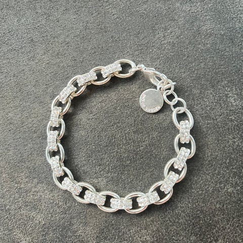 Armbånd i gullbelagt materiale og sølv. Designet for unisex bruk med en kombinasjon av lenker i to metaller. Ikke åpnet og brukt