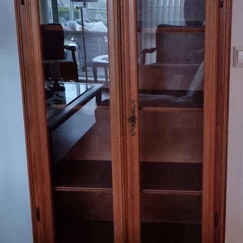 Nye oppbevaringsskap med herdet glass hvite, men med noen merker i glass
