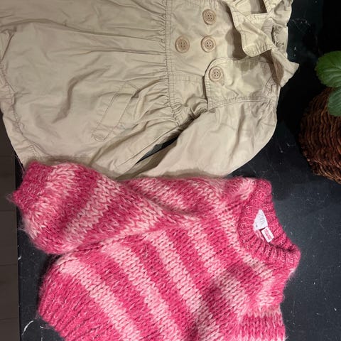 4 bukser, en flisjakke, 4 gensere og 1 t skjorte med snurre sprett