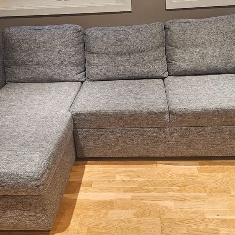 Fint brukt sovesofa. En liten rift i ryggen bak en av putene. Kjøpt på Jysk.