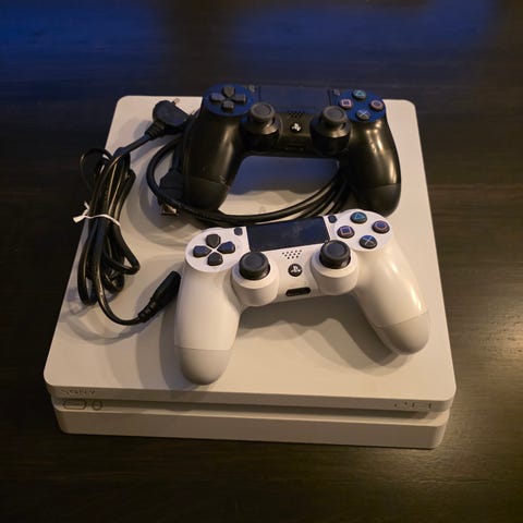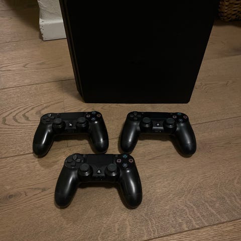 Playstation 4 spillkonsoll med standard design og svart farge. Konsollen leveres med en trådløs kontroller. Egnet for bruk med Playstation 4-spill.
