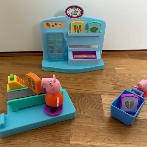 Peppa Gris lekesett som inkluderer flere figurer og tilbehør som et hus, bord, stoler, og ulike små gjenstander. Selges samlet :-)