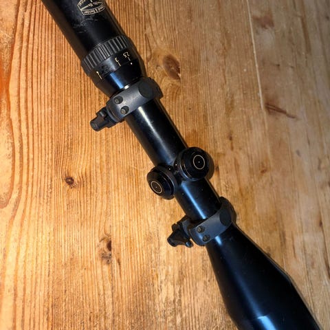 Kikkertsikte er brukt, men har ingen skader på lenser, minimale teign fra en tidligere montasje og 2 små riper på kroppen(se bilde 3).