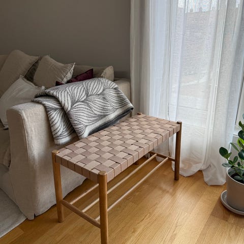 Benk fra House Nordic. Nypris 1500 kr. Passer fint på bad, i gang, på et barnerom og ellers i hjemmet. I god stand og lite brukt. Mål: 35x80x45cm