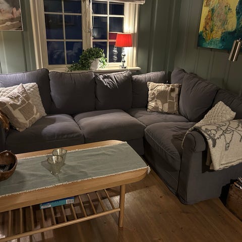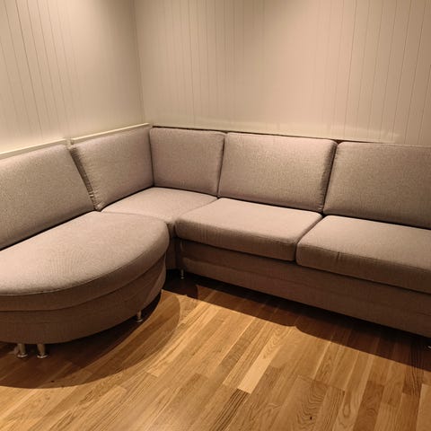 Selger brukt hjørnesofa grunnet overgang til en mindre variant. Åpen for diskusjon rundt pris, men sofaen er ikke tilgjengelig for henting før mai.