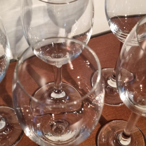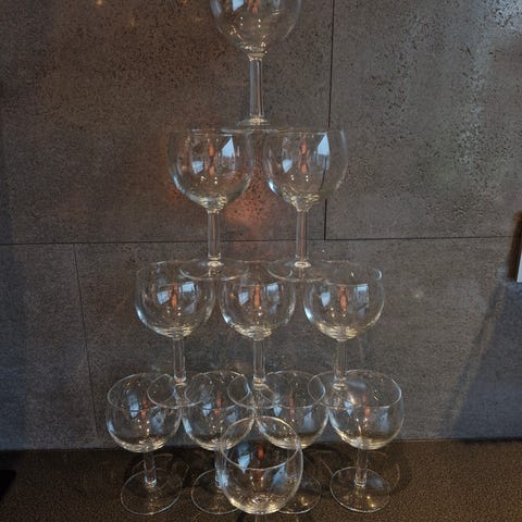 8 burgunder glass, 8 hvitvin, 18 rødvin selges samlet