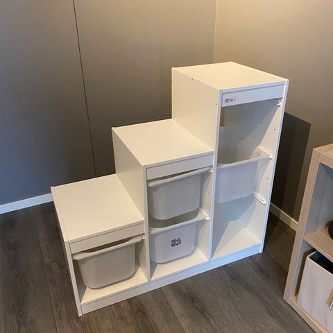 IKEA trappestige med oppbevaringsbokser i tre og plast