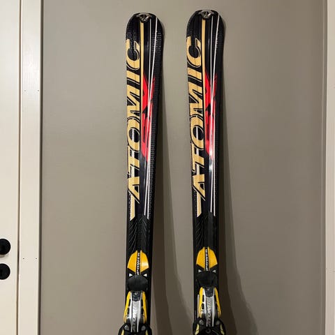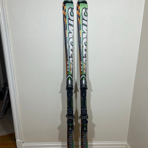 Atomic Supercross SX12 alpinski/skicross med bindinger. Skiene er 183 cm lange og designet for allsidig bruk i alpinbakken.