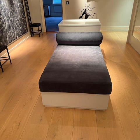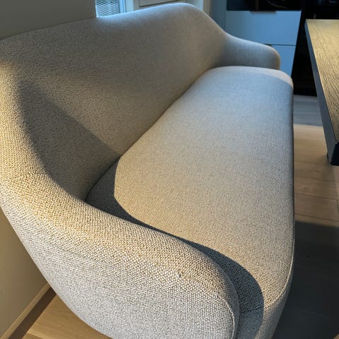 Modulsofa med fransk kantsøm i et slitesterkt tekstil fra kid. Selges da den ikke passer til stuen vår. Nylig pakket ut, sofaen fremstår som ny.