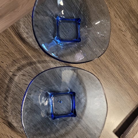 Stableboller i glass , med kristornmønster. Lokk til alle bollene . Men det går ikke å stable alle bollene opp i hverandre ,med lokkene på . Kr. 100.-