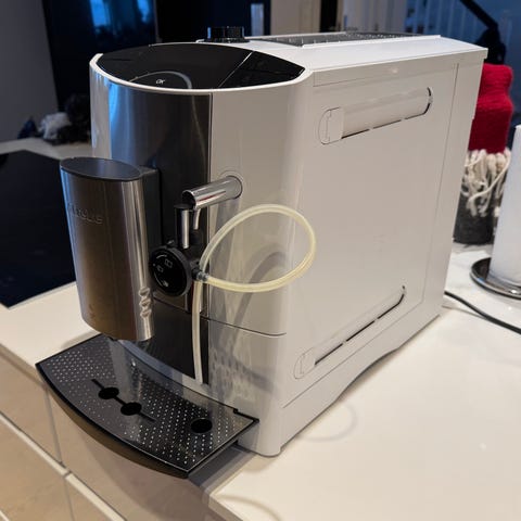 Selger en meget pen og velfungerende Miele CM 6350 OBSW helautomatisk kaffemaskin. Kjent for høy kvalitet, lang levetid og svært god kaffe.