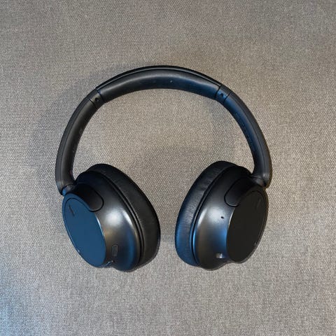 Sony WH-1000XM4 hodetelefoner i svart farge. Over-ear design med polstrede øreputer for komfort. Trådløs tilkobling med aktiv støydemping. Justerbar hodebøyle for tilpasset passform.
