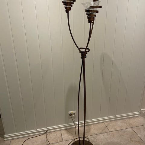 Stålampe med tre glasskuler i dempet mørkt glass