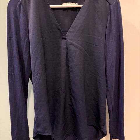 Blusen er i str 40, er i farge mørk blå, normal i str.