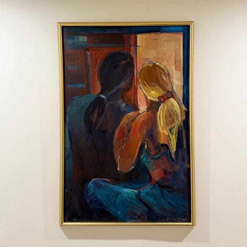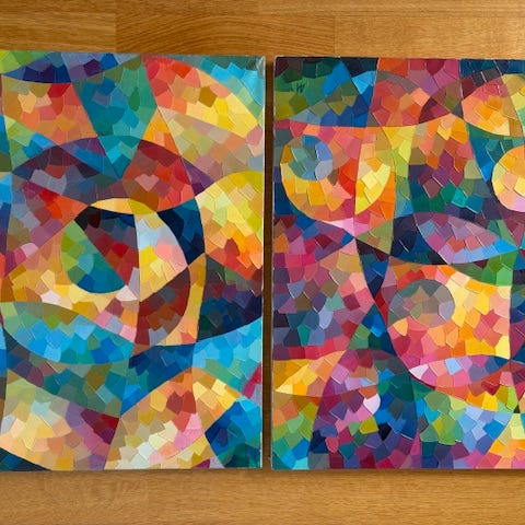 Abstrakt kunstmaleri med fargerik palett utført i oljemaling. Maleriet har en dynamisk komposisjon med brede penselstrøk i røde, blå, gule og grønne nyanser. Passer til dekorasjon av interiør med fokus på moderne og uttrykksfull kunst av Asli Vural.