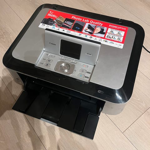 Canon MG6350 multifunksjonsskriver i hvit farge. Enheten har funksjoner for utskrift, skanning og kopiering. Kommer med tilhørende strømkabel. Ikke kompatibel med Windows 11, har driver til Windows 10 man kan laste ned på nettsiden til Canon. Veldig god printer for de der ute som har pc som kjører på eldre operativsystemer. Følger med nesten fulle patroner i alle farger. PS: Blekkpatronene er ikke Canon sin offisielle, bestilt fra Kina.