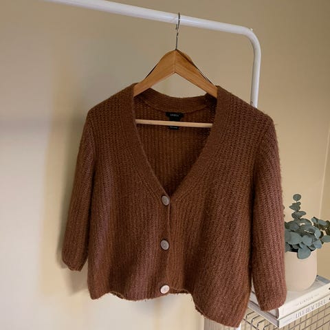 Oransje cardigan fra Lindex. Strl xs/s men kan brukes til M. Den er litt nuppete, men ser ellers fin ut.