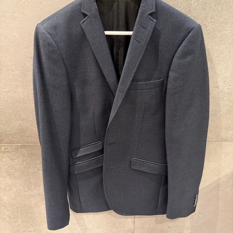 Tidløst snitt i mørk blå/charcoal farge. Passer godt til både jobb og mer formelle anledninger.