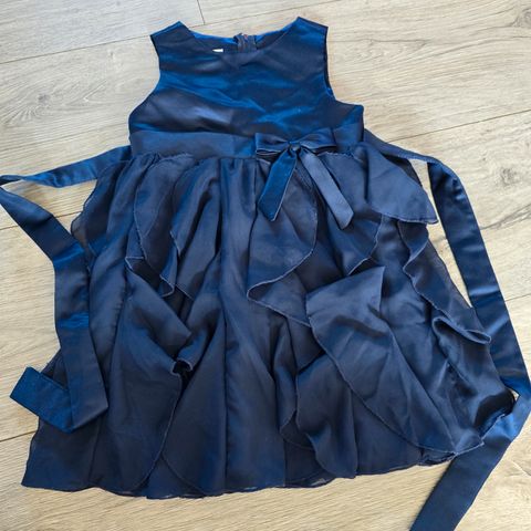 Kjole fra Pascal, str 12. Knapp på størrelsen, brukt av lang 9 åring I vårt bryllup. Tenker den passer bra 10-11 år. Fleksibel på størrelsen, da den justeres med hvor stramt den knytes i livet. Brukt 2 ganger, nyrenset nå.