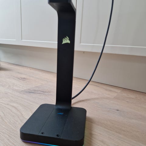 Selger min Corsair ST100 siden den ikke blir brukt og bare står og samler støv. Dette er et moderne hodetelefonstativ som brukes til å oppbevare headset når det ikke er i bruk.