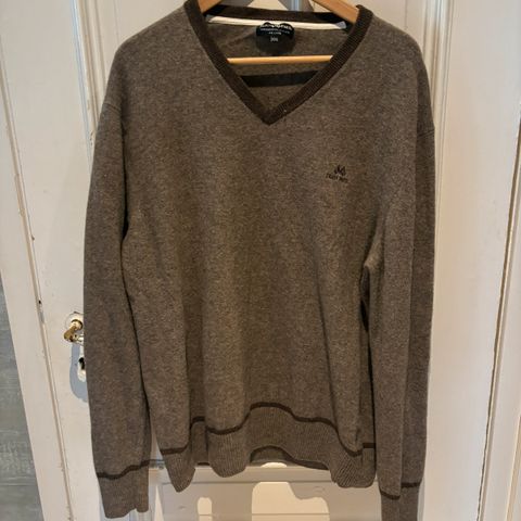 Jean Paul Eddy V-neck genser i størrelse XL. Genseren er lilla og laget av 80 % ull og 20 % polyamid. Passer for menn og har V-hals.