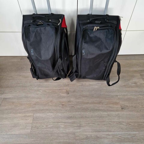 Selges pentbrukt. Uten hull, se bilder for detaljer og mål. 2 store rom med låsbar glidelås. 2 hjul. Vekt 2,3 kg.