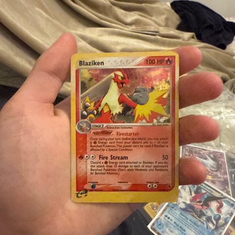 Pokémon samlekort sett bestående av flere holografiske kort med ulike Pokémon-figurer og bakgrunnsfarger. Kortene er i standard størrelse og inkluderer både figur- og energikort. Passer for samlere og spillere av Pokémon kortspill.