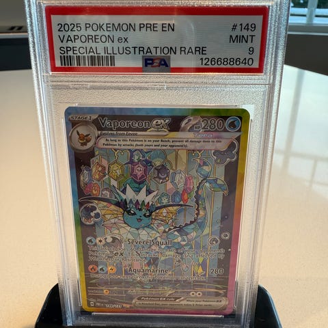 Jeg selger et par ulike slabs, blant annet en nydelig Gold Star Mew, Arcanine fra Aquapolis og en stilig Suicune ex - samt en raw Umrebon H30 fra Skyridge og en Espeon fra EX Delta Species.