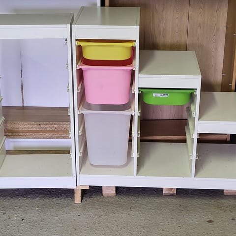 Trofast oppbevaringsmøbel selges. Innhold i kassene følger ikke med.