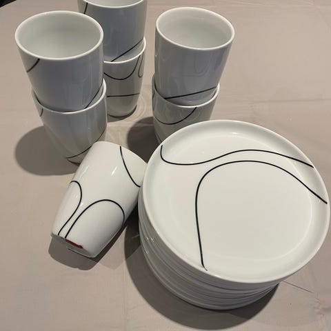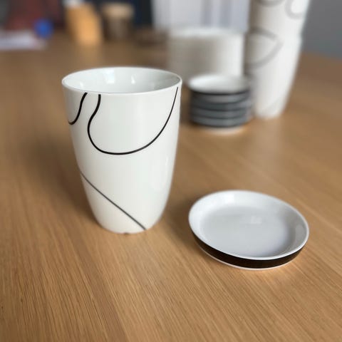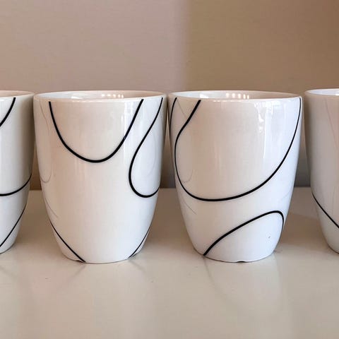Selger 13 kopper i serien Black Contour, designet av Pernille Vea for Menu. Porselen-kopper på 210 ml som er i fin stand. Pris per kopp er 100kr. Selges samlet for 1000kr.