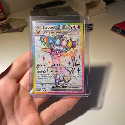 Pokémon Espeon GX samlekort med holografisk design. Kortet har 210 HP og tilhører Pokémon Trading Card Game.