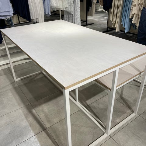 Bordet har synlige bruksspor og noe fargeforskjell mellom midtdelen og uttrekksdelene. Stabil konstruksjon. Selges som det er.
