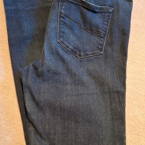 Diesel Skinzee jeans med zip nederst i blå denim. Størrelse S med midjevidde W28 og L32. Omtrent ubrukt og har ingen merker eller bruksskader.
