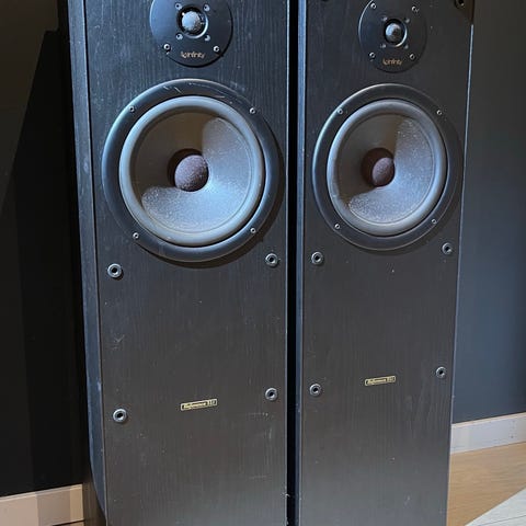 Dette er solide 3-veis høyttalere med fyldig og kraftig lyd, typisk JBL. God bass, spiller høyt uten å bli slitsomme. Passer fint til både musikk og film.