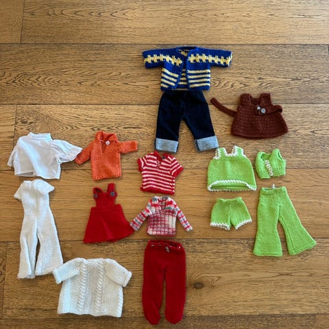 Burda 8576 dukke klær med ulike modeller og kombinasjoner for dukker. Mønsteret inkluderer flere plagg til Barbie og Ken. Her kan man leke seg med stoff og gjøre det moderne eller vintage. Ble åpnet nå for å se på mønsteret. Aldri brukt, så det er helt nytt. Nypris er rett over 200kr.