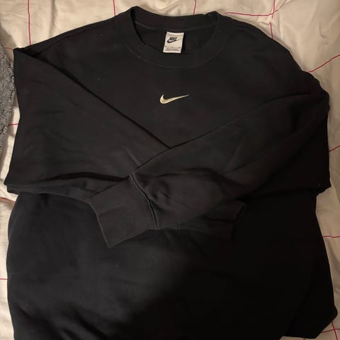 Litt slitasje på Nike logoen ellers fin. Den er større en hva størrelsen sier på måte en baggy fit.