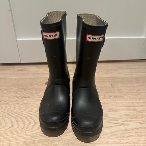 Hunter regnstøvler i størrelse 38, grønn farge. Støvlene er laget i vanntett materiale og er designet for å beskytte føttene mot regn og fuktighet.