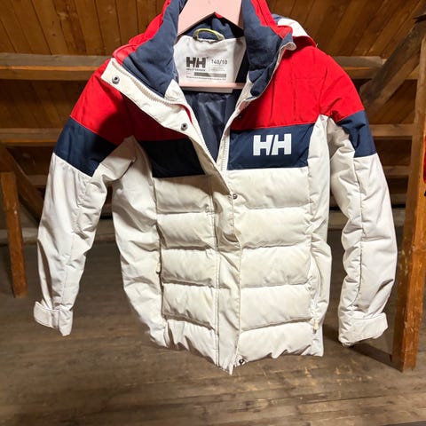 Helly Hansen dunjakke i størrelse 140 for barn, unisex. Jakken har flerfarget design og er laget av dunmateriale som gir isolasjon og varme.
