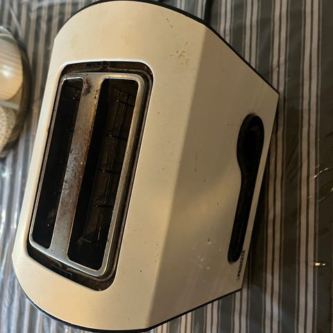 Godt brukt toastjern fra OBH Nordica. Det mangler en bit på undersiden fordi jeg tryna med det i sekken engang, men det gjør ingenting 😎