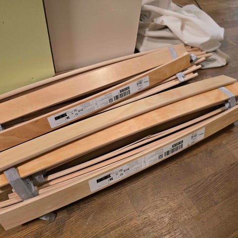 IKEA Luröy sengeramme med lamellbunn. Passer til standard madrass, laget av tre. Gir støtte og ventilasjon for madrassen.
