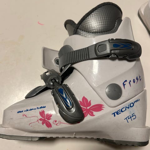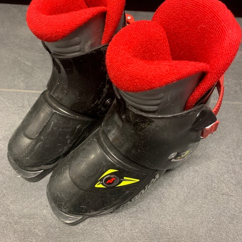 Brukte slalomstøvler til barn med enkel festeløsning fra Nordica. Masse bruk igjen. Normal bruksslitasje, ingen skader.