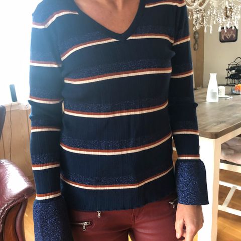 Som ny, Key West genser. Farge: Mørkeblå og kremfarget. Str.: L. Genseren har stripemønster og 3/4-lange armer. Kan sendes mot at kjøper betaler porto eller med fiks ferdig.