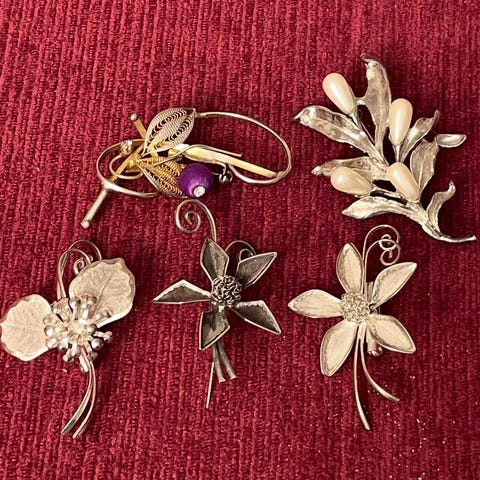 7 stk Vintage brosjer fra tidlig 2000 tallet. Alle er over 20 år gamle.