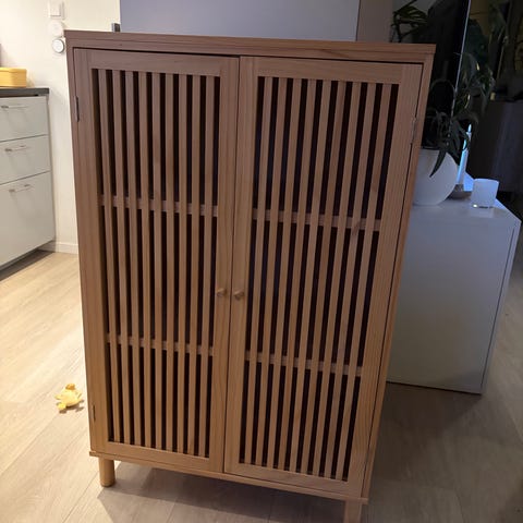 Elfa kurvsett basic mesh. Dette er to av typen 74/45 som er montert sammen og blir tilsamnen 147cm høy. For å dele den tilbake til to, medfølger to tverrstag. Det blir da en med og en uten topplate. Det er fire kurver til hver av typen mesh.