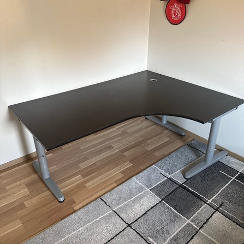 Pulten har opplegg på undersiden for samling av ledninger slik at en får et ryddig kontoroppsett. Den har også mulighet for høydejustering.
