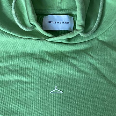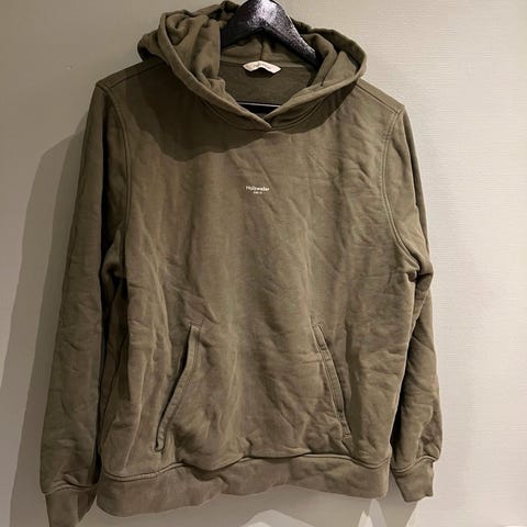 Holzweiler hettegenser i lysbrun farge, størrelse M for dame. Genseren har hette, og lomme foran.