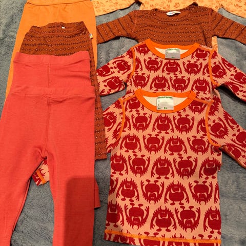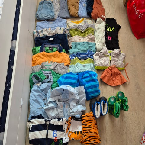 Liten klespakke i str 80. Ene settet er «godt brukt» resten er ganske pent/lite brukt.