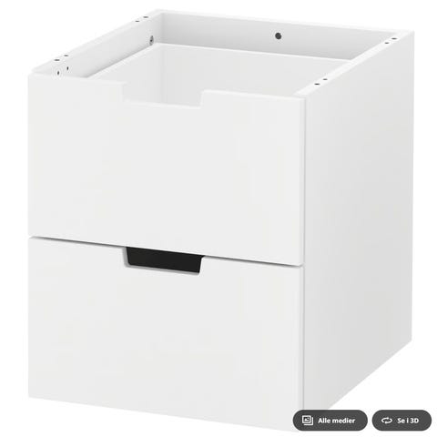 3 seksjoner med Nordli kommoder, totalt 8 store skuffer og 8 små. Kan organiseres som på bildet med 3+2+1 eller 2+2+2 eller andre kombinasjoner etter ønske. Tre små bruksmerker dersom man leter.